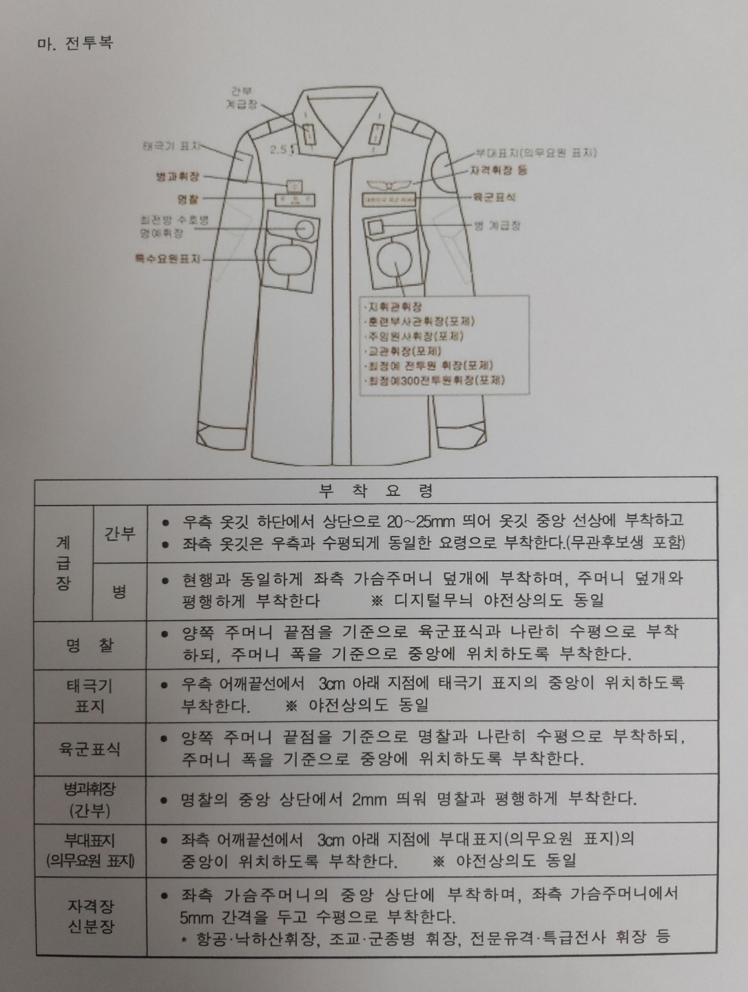 - [4학년 후보생] 육군 정복 및 야전상의 복제 규정