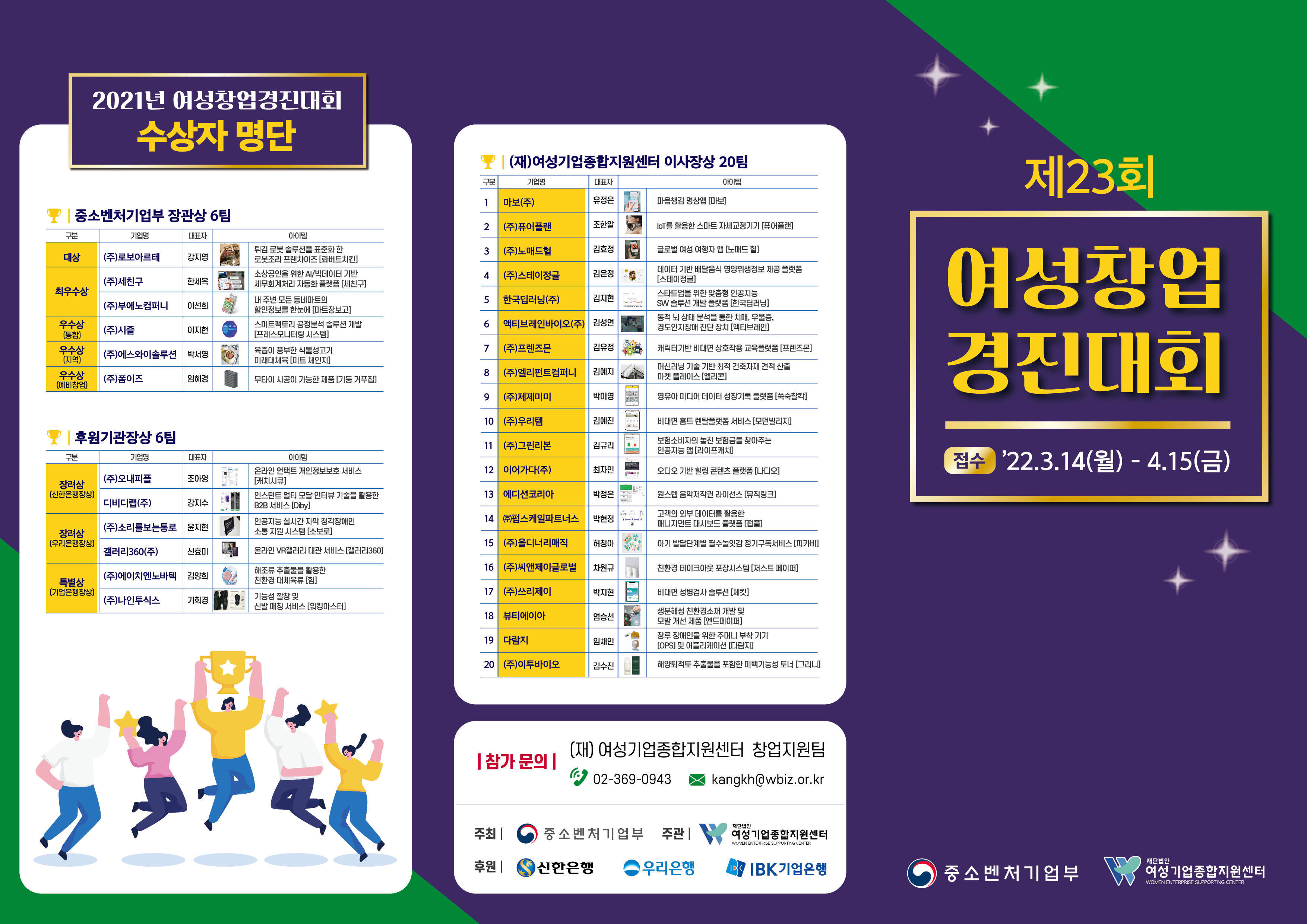 - [여성기업종합지원센터] 2022년 여성창업경진대회 참가자 모집