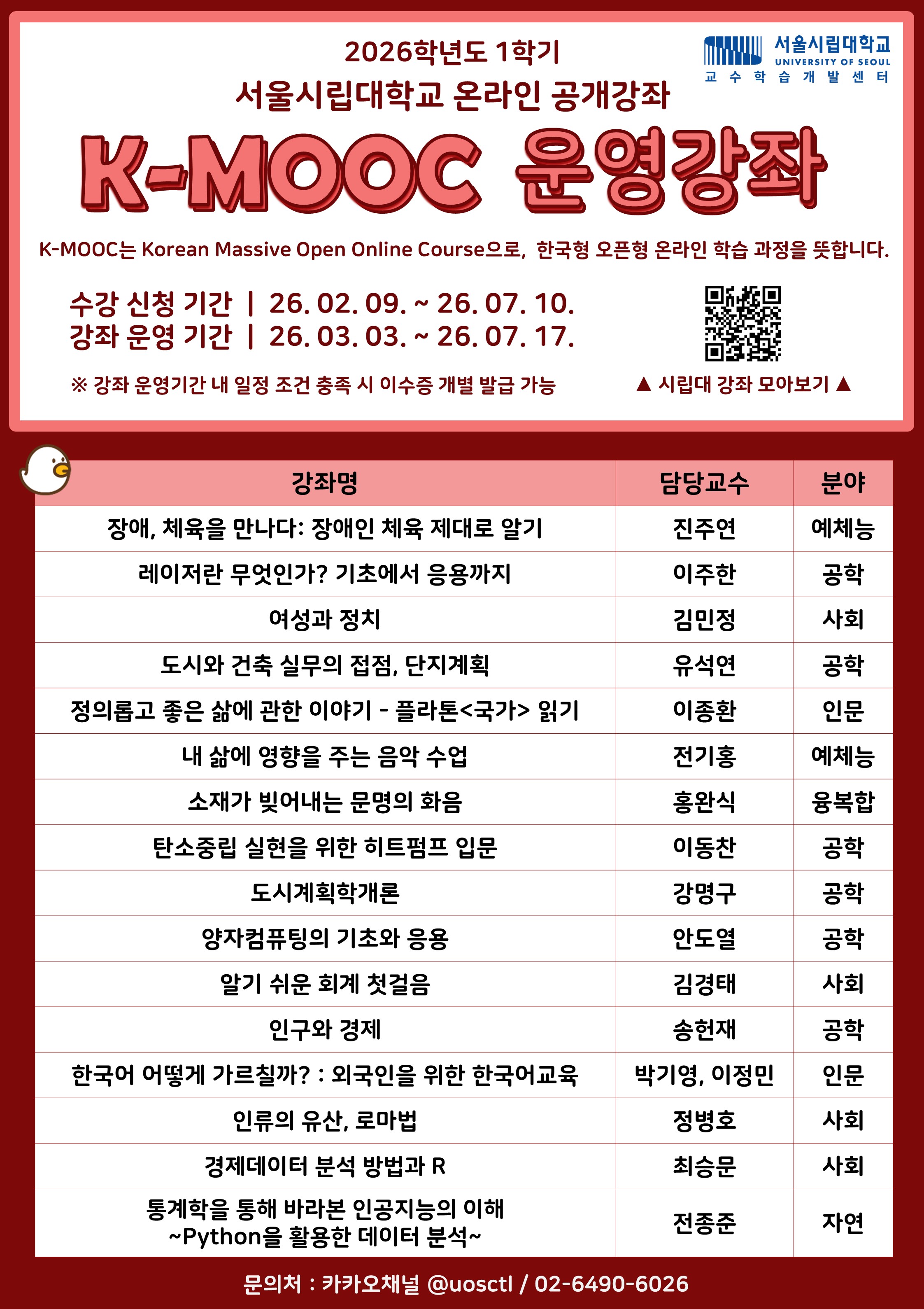 - 서울시립대학교 2026년 1학기 K-MOOC 강좌 수강 안내