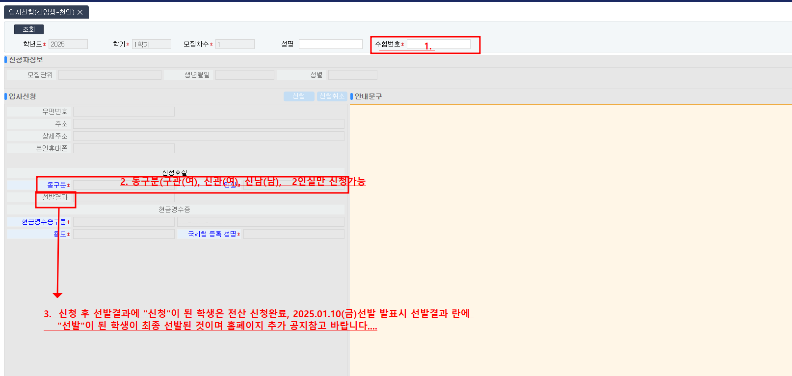 - [신입생][2025-1] 학생생활관 모집신청 및 선발 확인 방법
