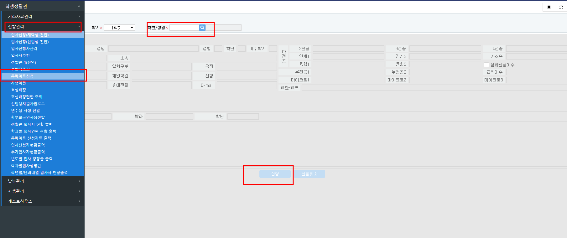 - [재학생][2025-1] 학생생활관 입사생 룸메이트 신청 안내문