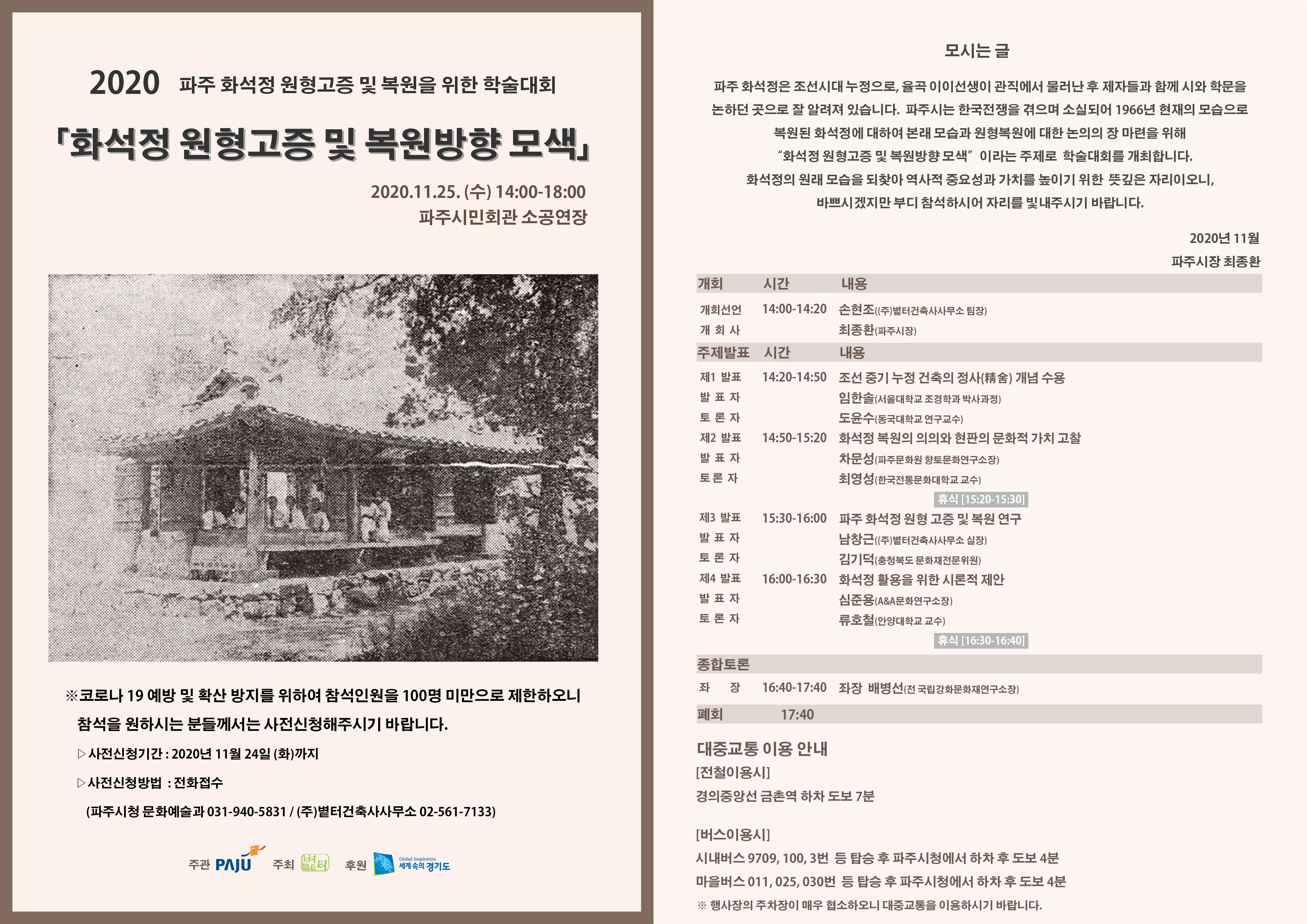 - [일반공지] [파주시] 화석정 원형고증 및 복원방향 모색 학술대회 안내