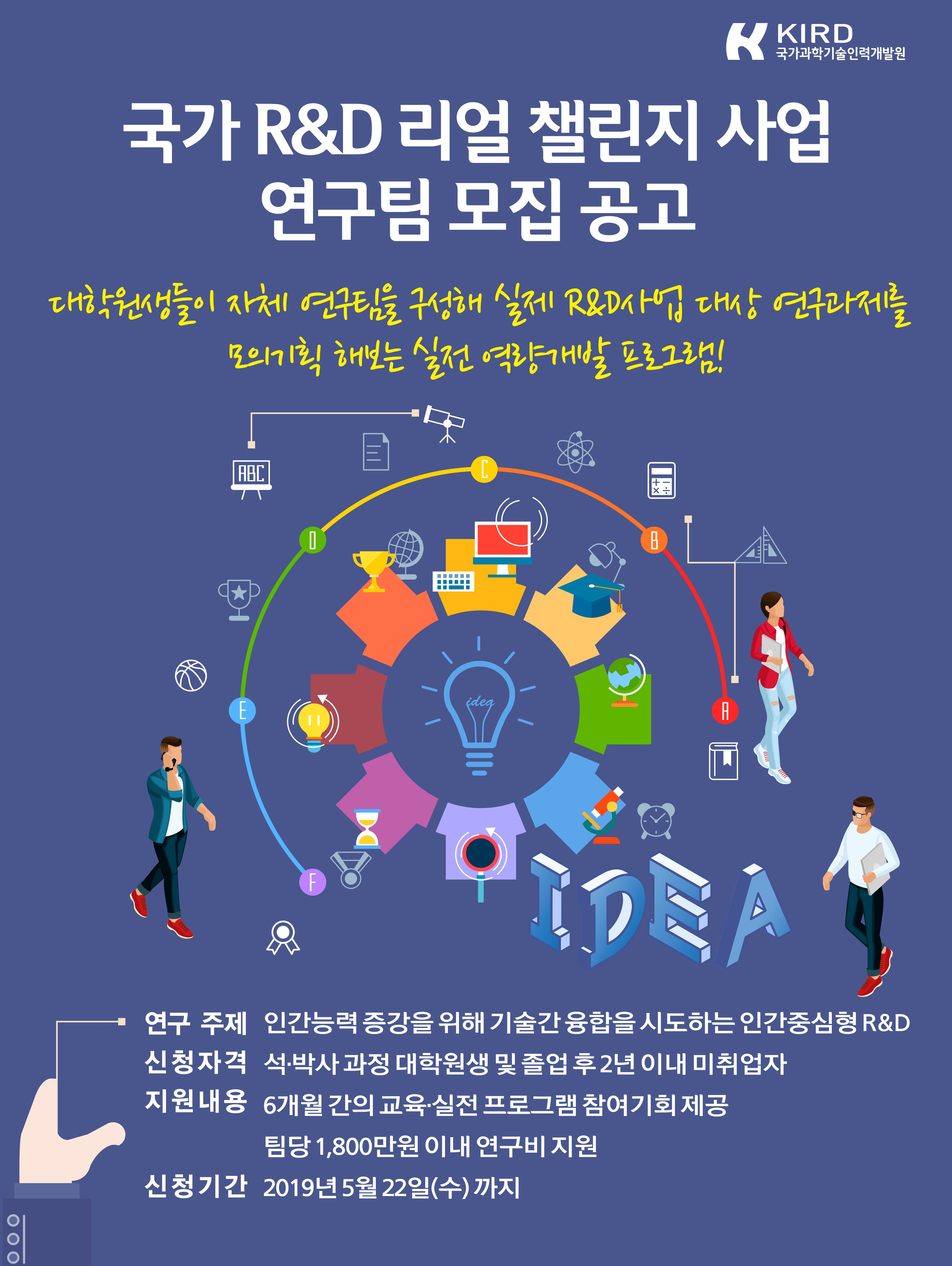 - [국가과학기술인력개발원] 국가R&D 리얼챌린지 사업 연구팀 모집 안내 및 홍보 요청