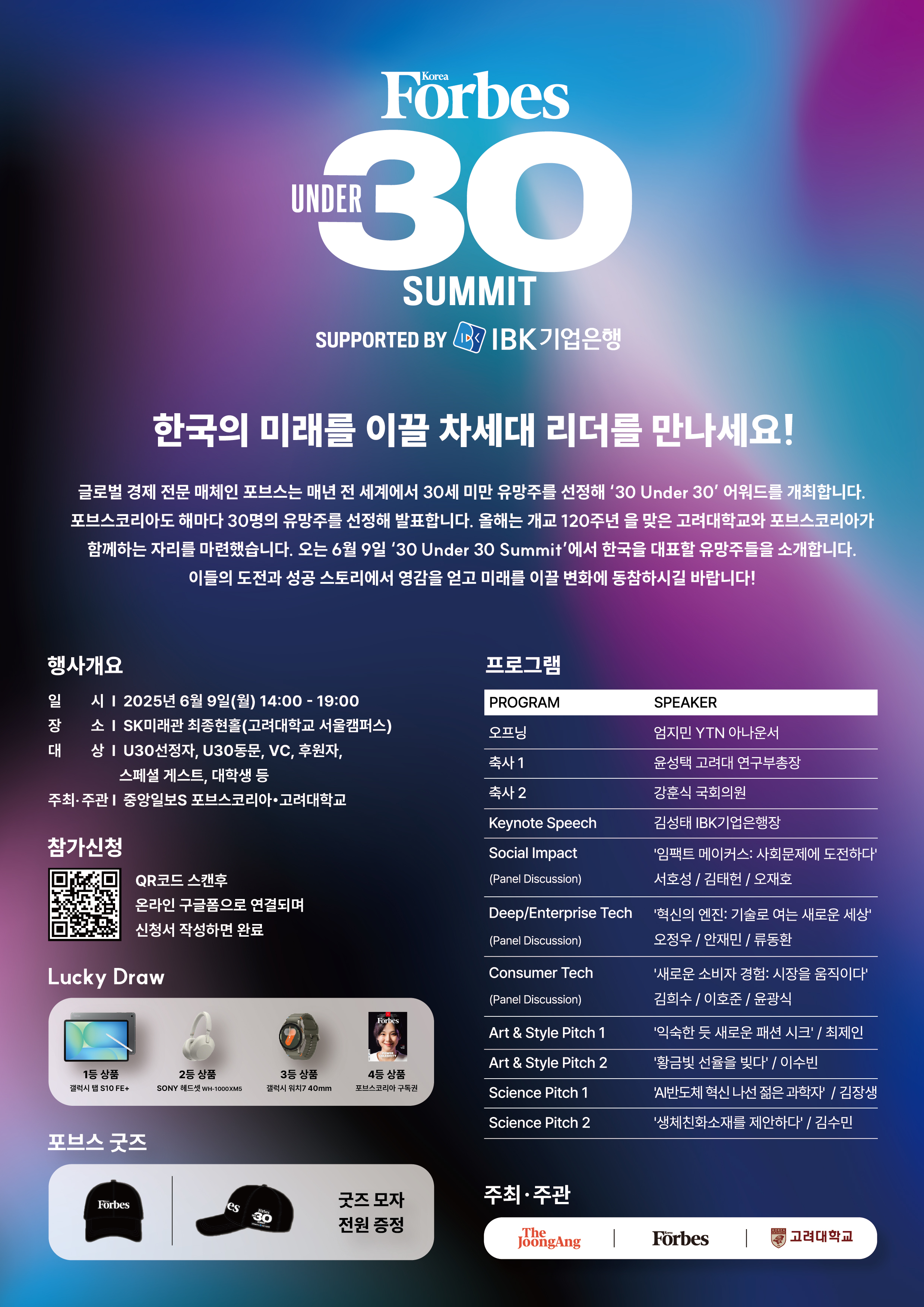 | 상명 [글로벌] | [중앙일보S] 2025 Forbes Korea UNDER 30 SUMMIT 안내 |