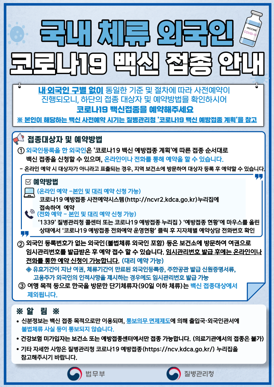 - [생활] 국내체류 외국인 백신접종 예약방법 변경 관련 번역본 안내