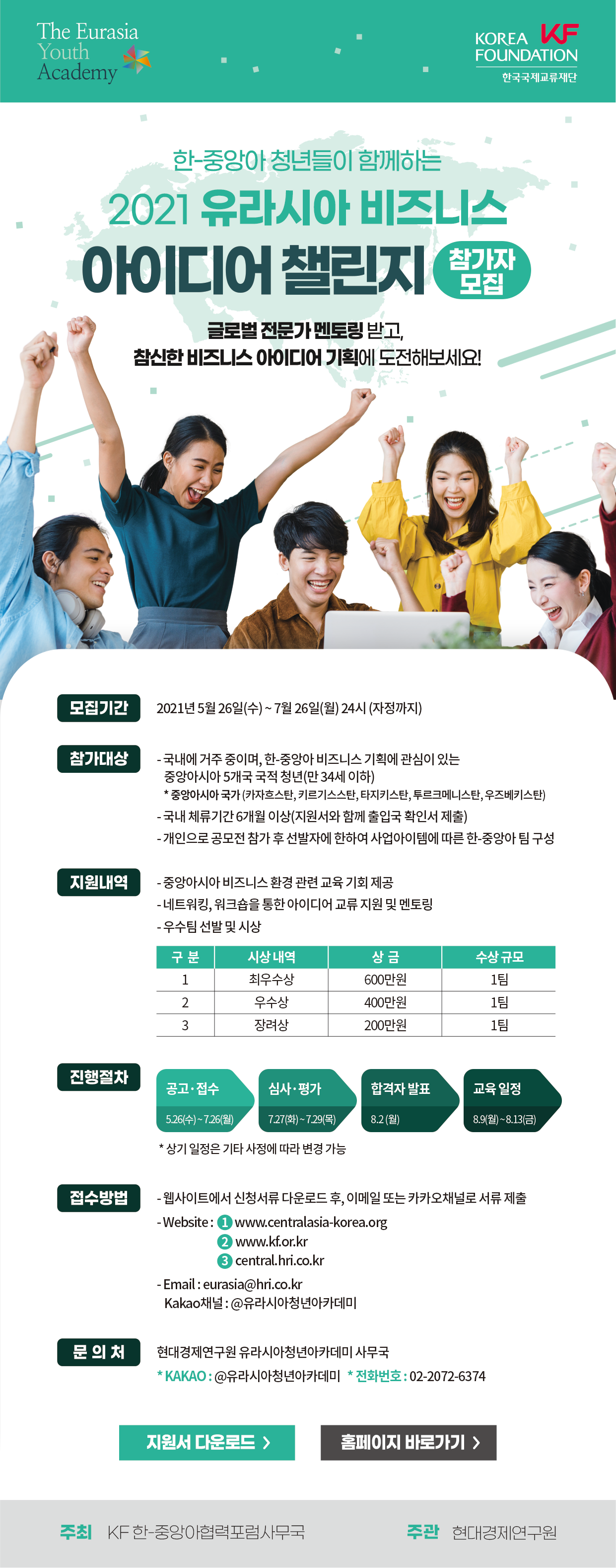 - [생활] 2021 유라시아 비즈니스 아이디어 챌린지 참가자 모집 안내