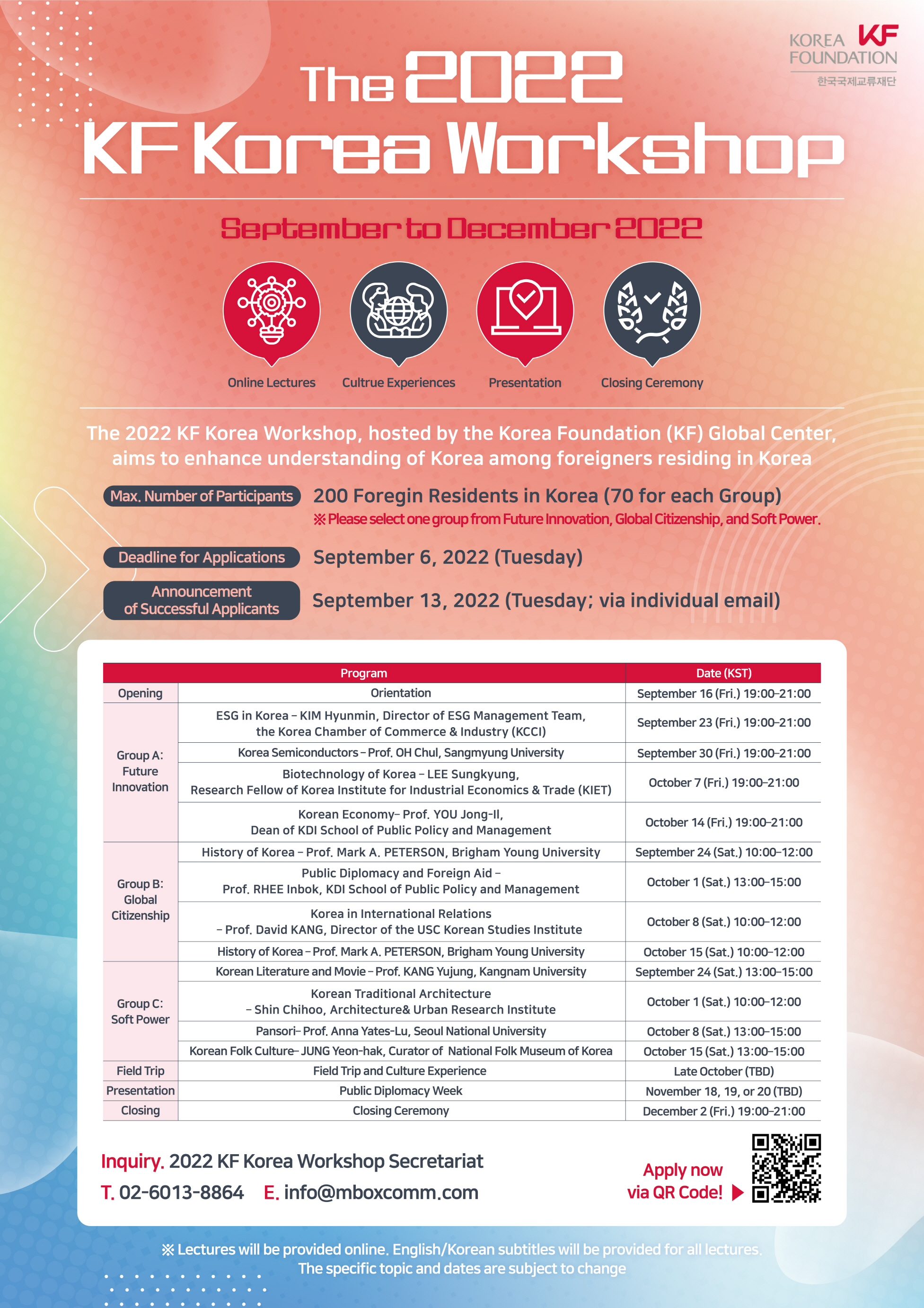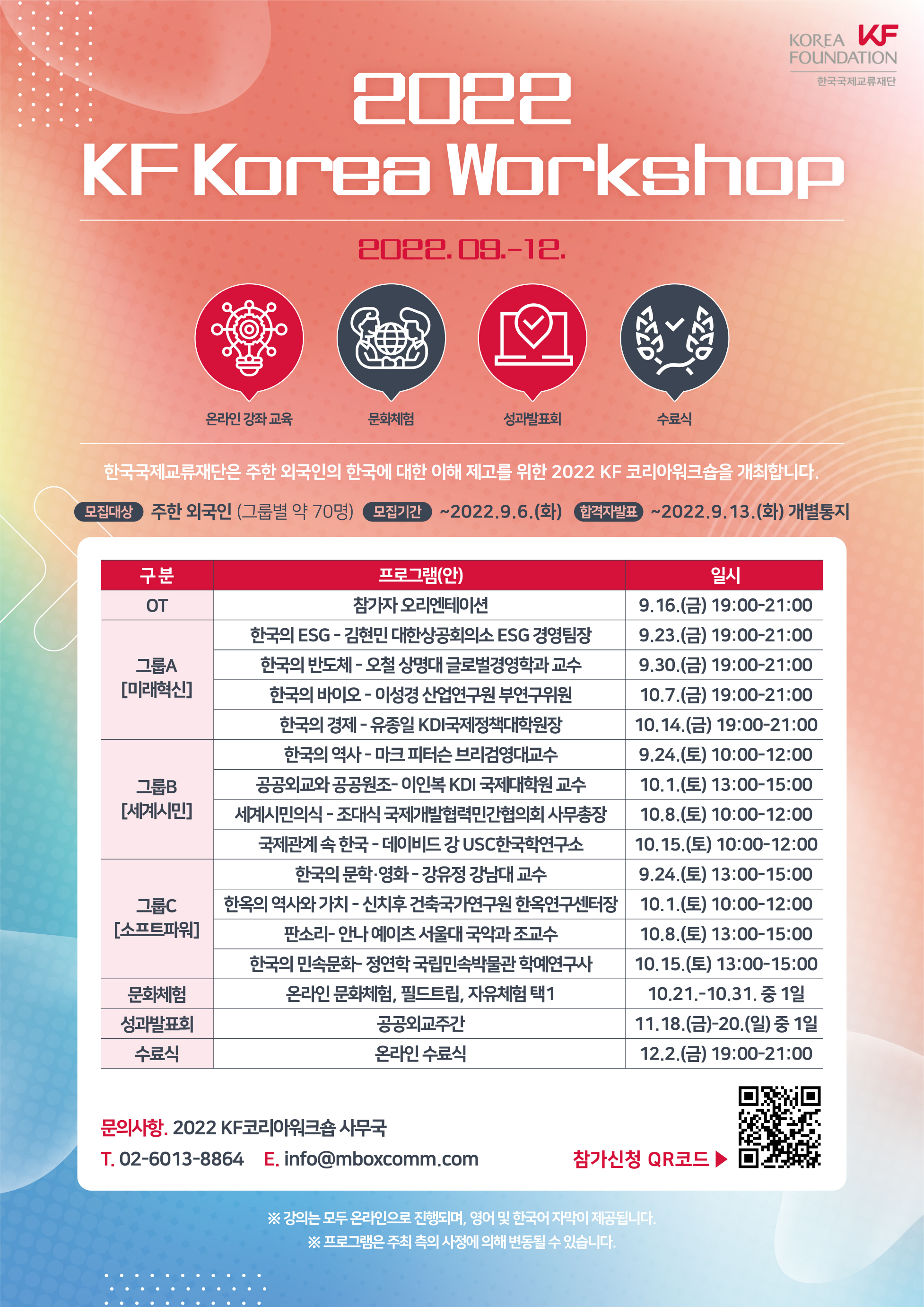 - [한국국제교류재단] 2022 KF Korea Workshop 참가자 모집 홍보