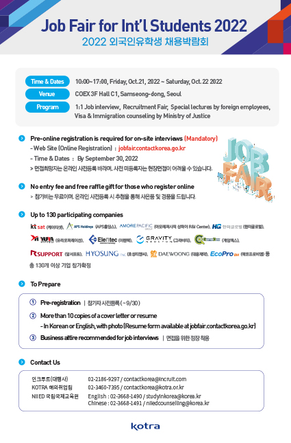 - [국립국제교육원] 2022 외국인 유학생 채용박람회 개최 안내