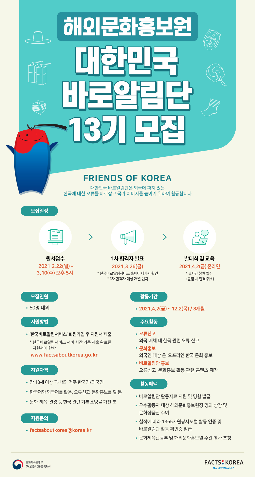 - 제13기 '대한민국 바로알림단(Friends of Korea)' 모집 안내