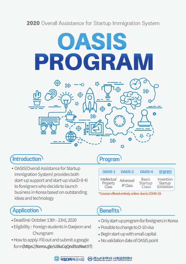 - OASIS(창업이민 인재양성) 프로그램 참여학생 모집 안내