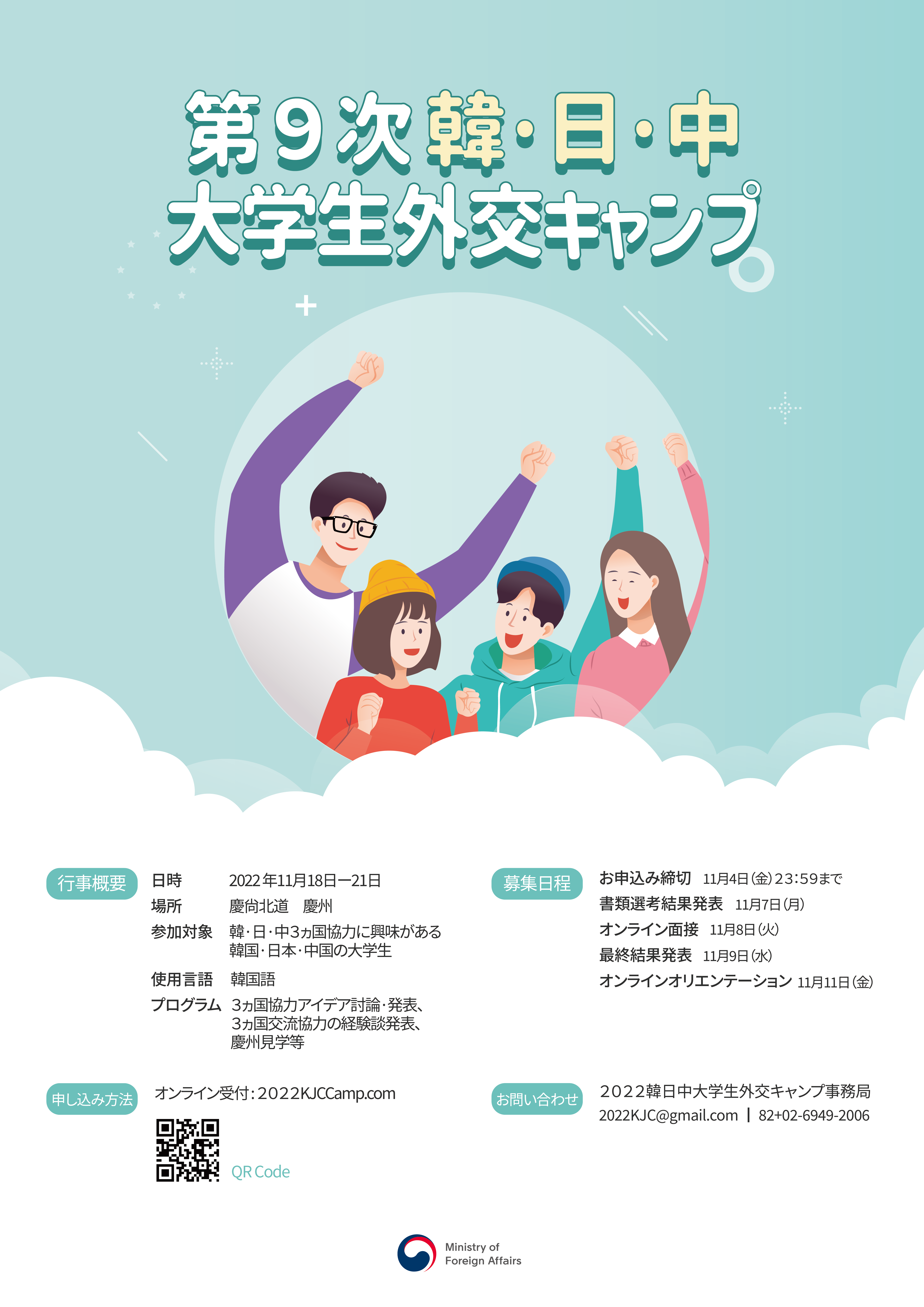 - [외교부] 2022 제9차 한·일·중 대학생 외교캠프 개최 안내